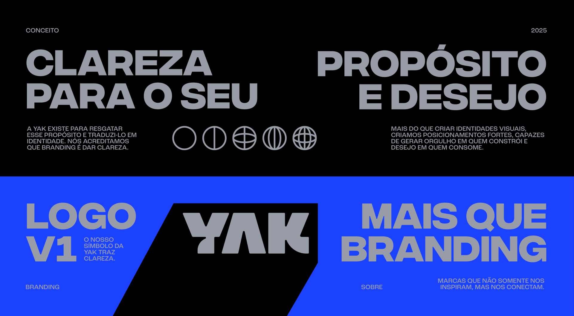 Yak is a branding studio dedicated to transforming ideas into a clear, strategic, and visually consistent identity. The client needed a brand that represents direction, purpose, and the ability to simplify complex paths, a studio that organizes, reveals, and distills what truly matters so each project can move forward with confidence.